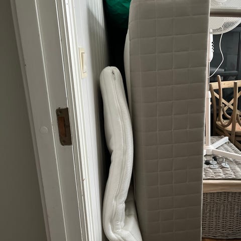Selges for en bekjent. Overmadrassen trenger en vask. Noe flyttemerker på siden, kan trolig vaskes vekk.