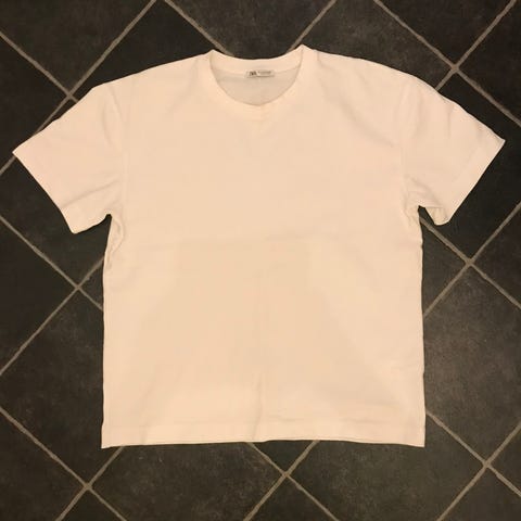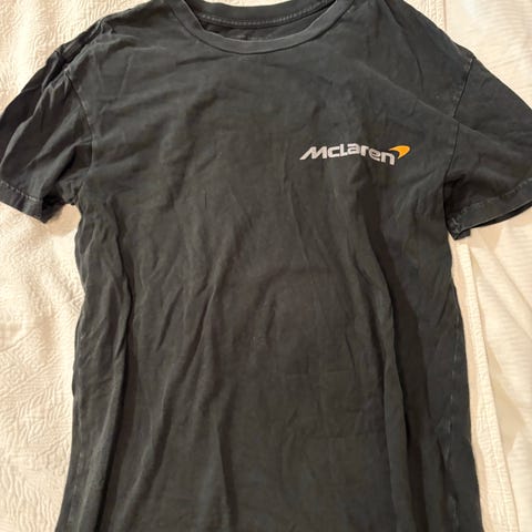 Zara McLaren T-skjorte i hvit bomull, størrelse one size. T-skjorten har trykk med McLaren Formel 1 racingteam og en bil på baksiden.