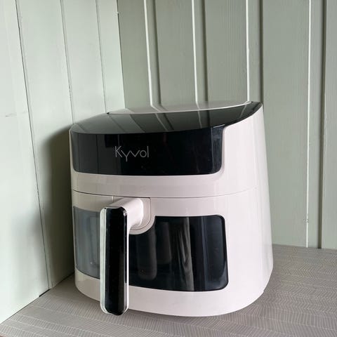 Airfryeren har 2400W effekt, så den blir raskt varm og steker maten effektivt. Maten blir sprø og god med lite eller ingen olje – super til pommes frites, kylling, grønnsaker m.m.