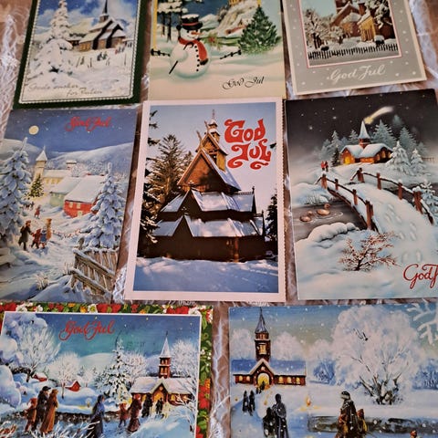 8 med kirkrmotiv. 6 med frimerker,og et uten frimerke alle brukt og et ubrukt som nytt kr 53 for alle pluss porto