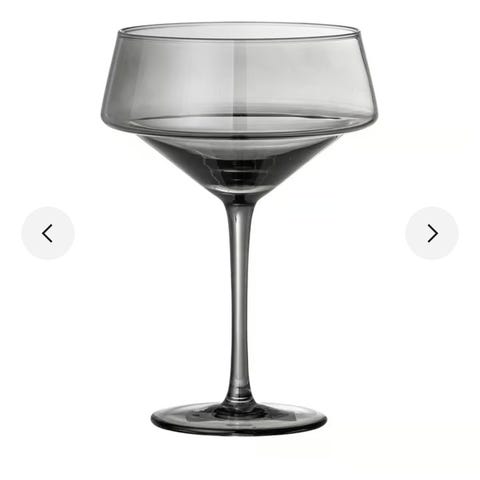 Champagneglass med grønn dekor på stilken. Glassene er laget av klart glass med en grønn kuleformet detalj på stilken. Egnet for servering av drikkevarer ol.