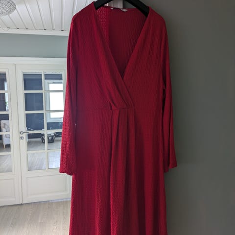 Tara sommerkjole i størrelse M, laget av polyester. Kjolen har rød farge og er designet for kvinner. Nydelige detaljer foran, korte armer. Lukking på siden med glidelås.