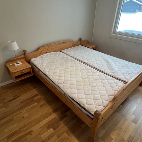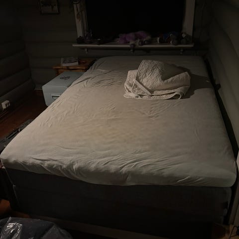 Sengen er kun benyttet på gjesterom, god å ligge på! Kan være behjelpelig med frakt i Gjøvik-området!