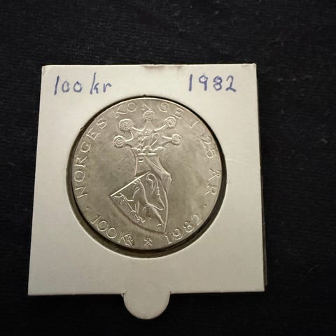 Norsk sølvmynt 1982 Norges konge i 25 år.