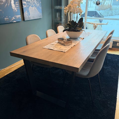 Vi selger 4 av våre sorte velur spisestoler da vi har kjøpt nye.