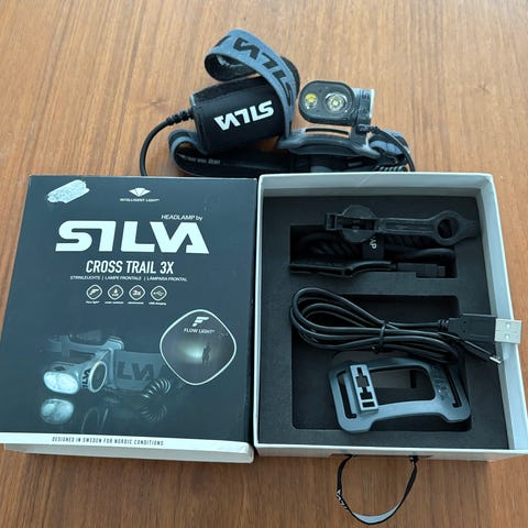 Silva Trail Speed 4XT hodelykt med ekstern batteripakke. 1200 lumen lysstyrke. Justerbar hodebøyle og kabel mellom lykt og batteri.