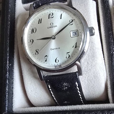 Omega Geneve calibre 630. Verket ble lansert i 1962. Denne klokka ble produsert i 1972 serienummer 35011661 Gullbelagt kasse 20 Microns. Diamater kasse 24 mm. Pen klokke, går fint ved oppterkk, noen bruksspor