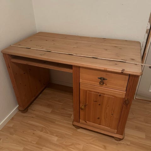 Lite, gammelt skrivebord med skuffer