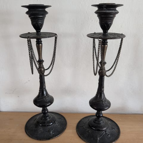 2 flotte smijern lysestaker for kubbelys, høyde 40 cm, dybde ca 14 cm, vekt 1,7 kg pr. stk.