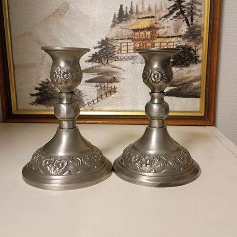 norske vintage lysestaker i tinn