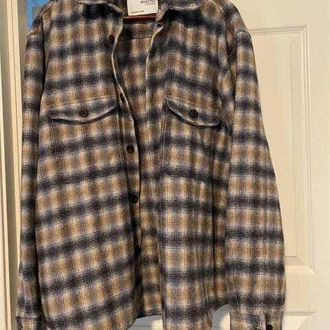Levi's skjorte i blå bomull, størrelse L for herre. Skjorten har en klassisk design med knappelukking og brystlommer. Laget av bomullsmateriale som gir komfort og pusteevne. (AI-tekst)