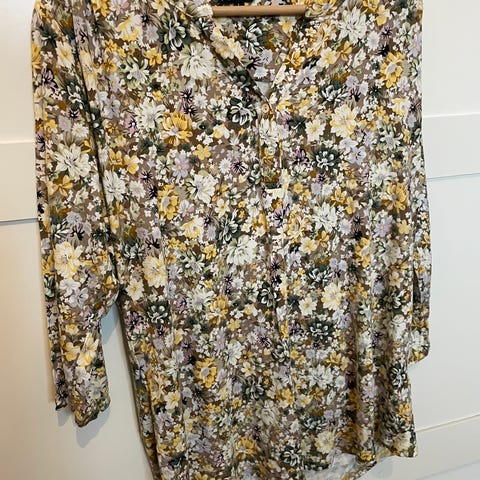 Nydelig topp i svart m gullfargede blomster str.L. pent brukt!