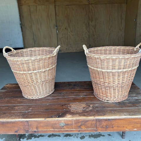 Flettet kurv, 2 stk. selges samlet. Høyde ca.40 cm og diameter i toppen ca.50 cm.