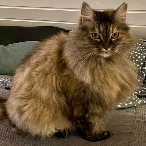Når hun er gammel nok skal hun ha 2 kattungekull som fødes og vokser opp hos fôrvert, til de er ca 14 uker gamle. Etter de avtalte kullene overtar du som fôrvert eierskapet på henne kostnadsfritt. Du betaler ikke for henne, men jobben som fôrvert regnes som betaling for katten.