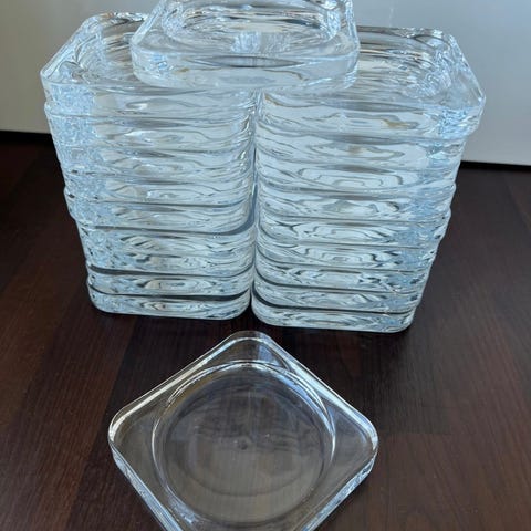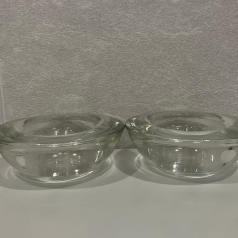 Pent brukte lysfat til kubbelys. Selges 20 kr pr stk
