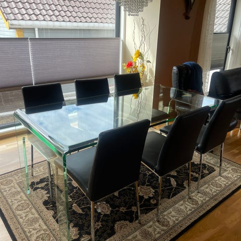 Glassplaten er solid og har en fasett slipt kant 2 cm rundt ytterkant.
