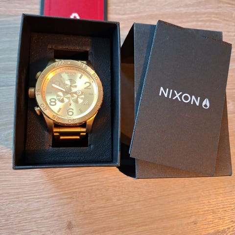 Stilig og robust kronografklokke med solid rustfritt stålhus på 48 mm. Har svart urskive, tydelige kronograffunksjoner og vanntetthet opptil 200 meter. Perfekt for deg som vil ha en kraftig klokke med moderne design.