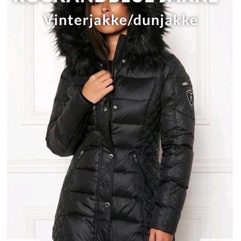 Fuskepels krage, kan tas av. Varm jakke, god lengde.