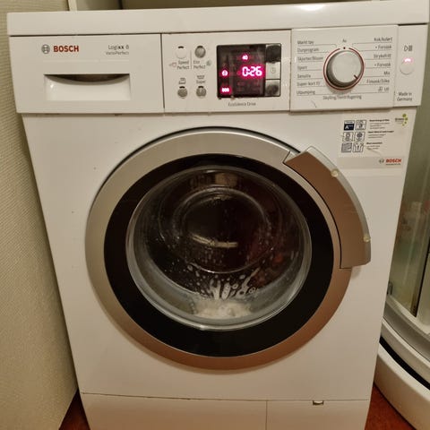 Selger en Bosch Serie 6 VarioPerfect vaskemaskin (modell WAT283L8SN/20) i pen stand. Selges da det fulgte med vaskemaskin i leiligheten vår.