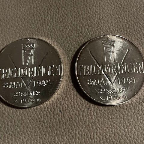90% sølv og 10% kopper. Fin samling av Roosevelt 10 cent. Fra kr.175 pr.stk.