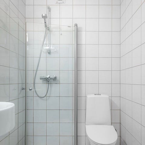 Alterna Primeo Buet dusjkabinett mål 90x90 cm, laget av herdet glass (EN 12150) med hvitlakkert aluminiumsramme. Fronten består av klart, etset glass og bakveggene er i akryl. Kabinettet har justerbare ben og kan monteres på både høyre og venstre side. Dørene er skyvbare på dusjkar med magnetisk tetning for lukking. Dusjkabinettet er kun montert opp og ned igjen i nybygg. Aldri brukt. Nypris kr 9 985.