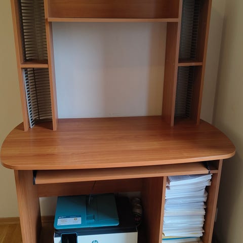 Pent brukt skrivepult inkludert en svart kontorstol (hel og pen)