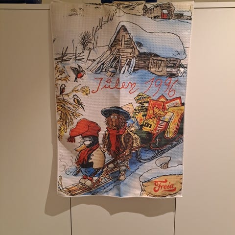 Nydelig handlenett i Flåklypa og Aukrust motiv. Kun åpnet for bilde! Hentes i Brumunddal eller sendes på kjøpers regning. Bruker ikke Fiks Ferdig!