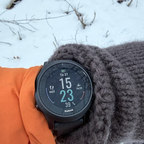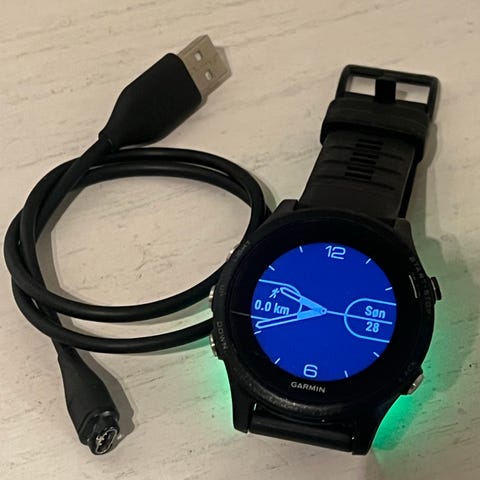Garmin Forerunner 935 GPS-klokke i svart farge. Klokken har funksjoner for treningsovervåkning. Egnet for bruk under løping og andre idrettsaktiviteter. En liten skrape på skjermen, kan sende bilde etter ønske.