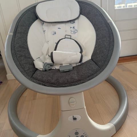 Elektrisk vippestol med flere innstillinger + white noise. Helt genial for å få de små til å slappe av. Velg mellom «car ride», «kangaroo» og andre program. Intensitet fra 0-4 på alle program.
