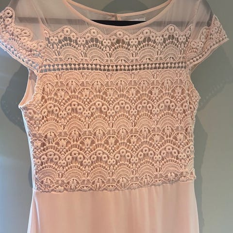 Vila festkjole i størrelse 38 begge to, rosa farge. Ble kjøpt som mor og datter kjole til bryllup,brukt bare en gang. Lang kjole 500kr og kort kjole 400
