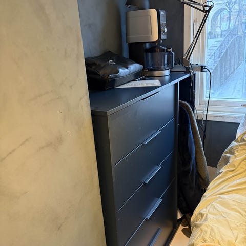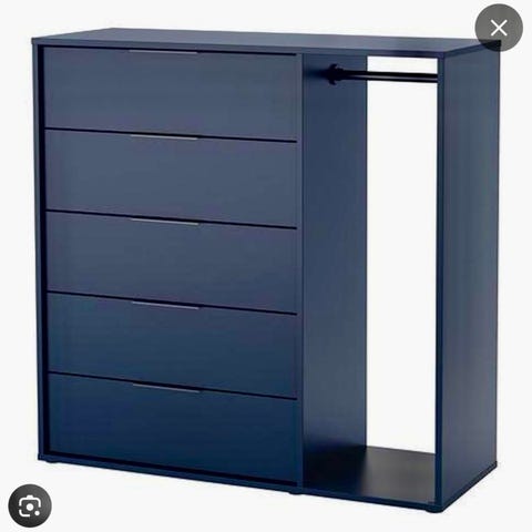 Mørk blå Ikea Nordmela kommode selges kr 400. Den har noen bittesmå hakk som knapt synes (se bilde), men ellers hel, pen og i god stand.