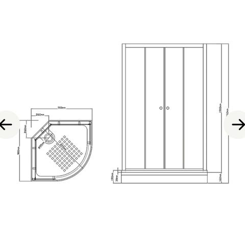 Solid dusjkabinett med skyvedører, bunnkar og armatur. Har stått i bruk på hytte med lite brun. Fungerer som det skal.