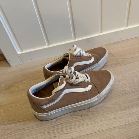 Vans sneakers joggesko i størrelse 39 med svart farge. Skoene har klassisk design med hvite detaljer og hvite lisser. Sålen er gummiert med mønster for godt grep.
