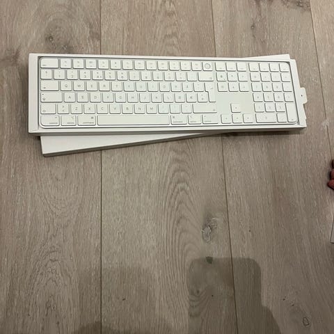 Apple Magic Keyboard Tilleggsutstyr i hvit farge. Produktet inkluderer tastatur med trådløs tilkobling, ladekabel og original emballasje. Passer som ekstrautstyr til Apple-enheter. Dette er helt nytt, men plasten er tatt av hvor jeg trodde jeg skulle bruke det, men det er aldri blirr brukt. så helt ny, pris kan diskuteres