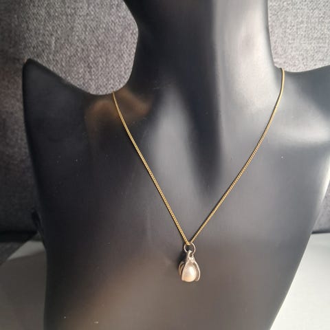 Utsøkt anheng i sølv og gullbelagt kjede.