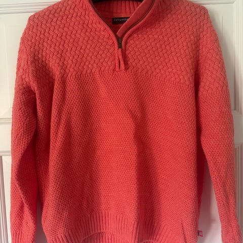 Ullgenser i nydelig dyp rosa farge .Brukt en gang. Glidelås i halsen .Lang på ermene med hull for tommel .God tur genser .