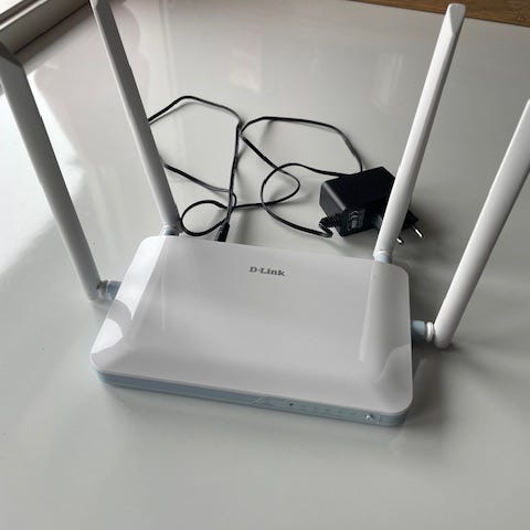 D-Link DIR-868L Router med 4 LAN-porter og en WAN-port. Enheten er sort og leveres med strømadapter. Designet for bruk i nettverksoppsett som krever kablet tilkobling og trådløs ruting.
