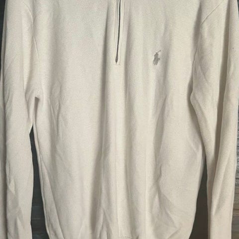 Ralph Lauren genser i størrelse S for menn. Genseren er mørk blå og laget av bomull. Den har en halv glidelås i front og passer til hverdagsbruk. Før pris kr 1895,-.