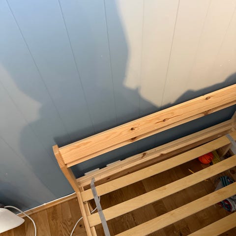 IKEA enkeltseng for barn. Sengen er laget i hvitt materiale og har en enkeltdimensjon som passer for barn.
