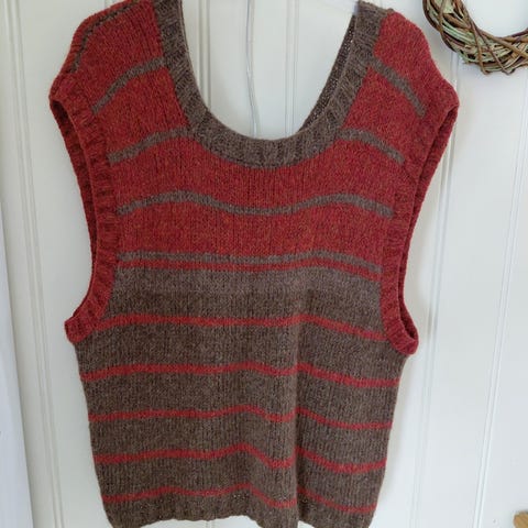 Hjemmestrikket lang vest str XL.