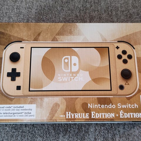 Nintendo Switch Lite Hyrule Edition håndholdt spillkonsoll. Kompakt og bærbar konsoll designet for håndholdt spilling. Spesialutgave med Hyrule-tema, inkludert unikt design og fargevalg. Egnet for Nintendo Switch-spill som støtter håndholdt modus.