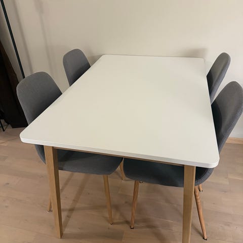Spisebord med 6 grå stoler