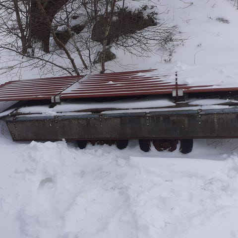 Den er påkjørt og bør rettes litt før bruk men tror den kan skyves fint slik den er