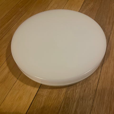 Lampen er 40cm I diameter og passer like godt på et bad som I boden.