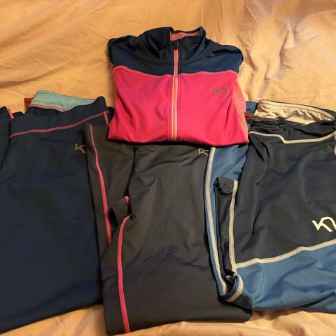 Lifa Active treningssett for dame i størrelse M, bestående av en grønn overdel og svarte bukser. Settet er designet for sport og aktivitet, laget med materialer som gir lett isolasjon og fuktighetskontroll. Passer til ulike treningsformer og utendørsaktiviteter.