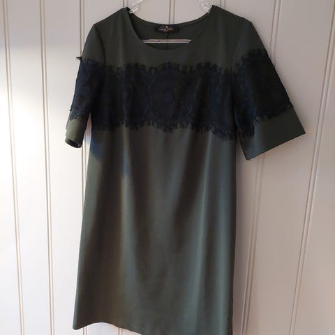 Olivengrønn lang kjole med justerbart liv.