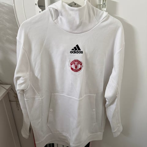 Adidas Champions League hettegenser i størrelse XL for menn. Genseren er rød og laget av bomull. Den har hette med hvite snorer og trykket Champions League-logo på fronten.