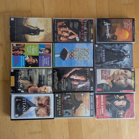 6 stk gamle videofilmer / vhs kassetter. Herlige minner.