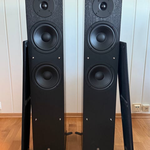 Selger gulvhøyttalere til en rimelig pris. Høyttalerene spiller bra men kabinett har noen bruksmerker. Selve elementene er helt fine uten merker. Pris kan diskuteres