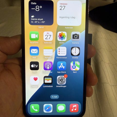 Apple iPhone 13 Pro mobiltelefon med 128 GB. Batterikapasiteten er målt til 79 %.
